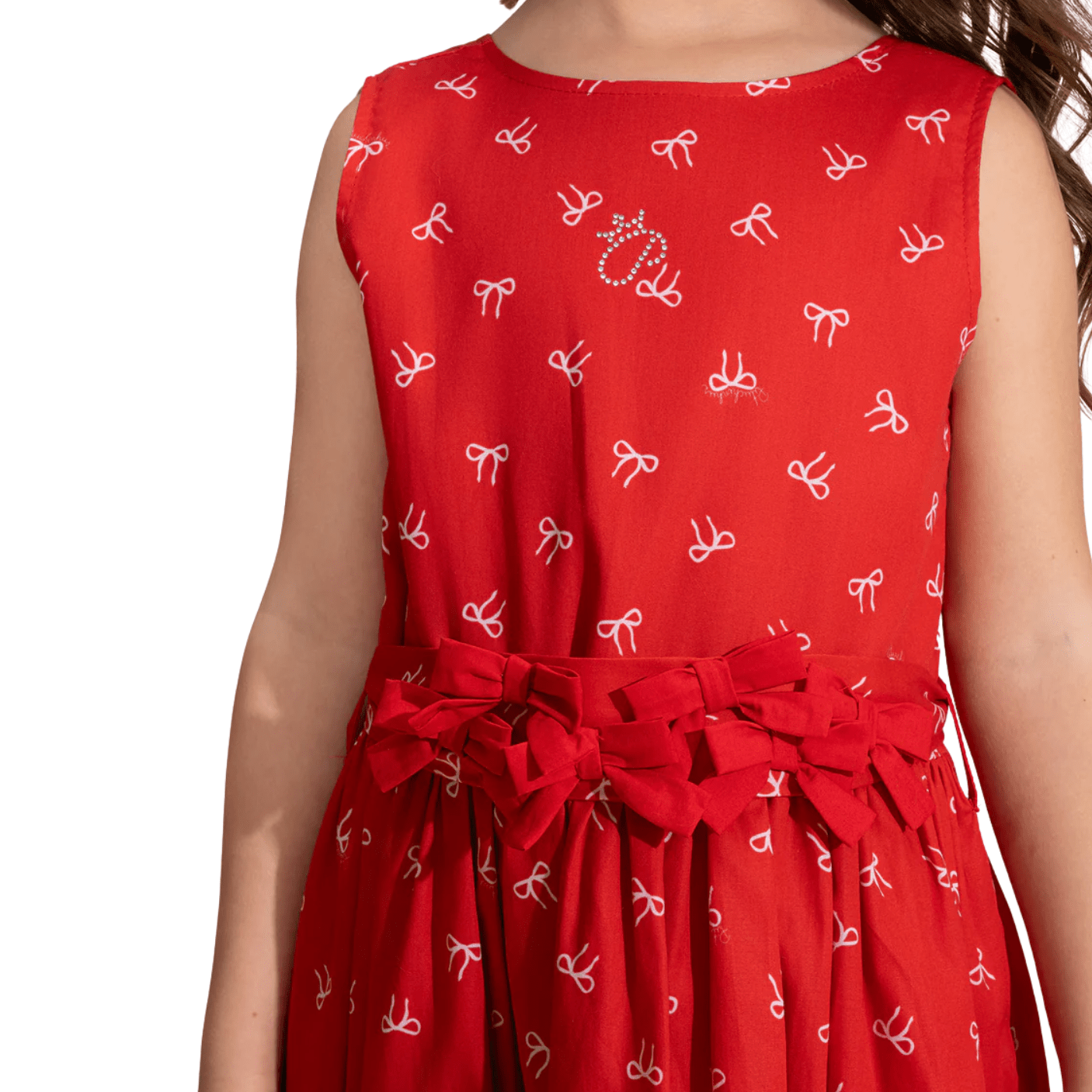 Confeccionado em algodão leve e macio, o vestido possui estampa de lacinhos exclusiva, que deixa o visual ainda mais delicado e cheio de charme. A saia ampla garante movimento suave e um caimento impecável, enquanto os lacinhos aplicados na cintura formam um detalhe apaixonante, valorizando a silhueta infantil com sutileza e feminilidade.