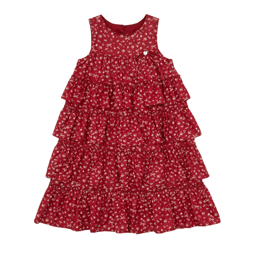Com estampa mini floral em tons de cereja e modelagem fluida em camadas, a peça transmite romantismo e leveza em cada detalhe. Confeccionado em algodão, proporciona conforto, frescor e liberdade de movimento — perfeito para acompanhar as pequenas em momentos especiais e no dia a dia.
