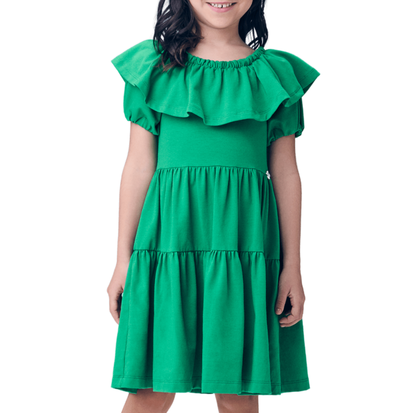 O Vestido Babado Manga Balonê Verde Momi é a escolha perfeita para quem ama um visual alegre, fluido e cheio de charme! Com seu tom verde vibrante e modelagem encantadora, ele combina conforto e estilo para acompanhar as pequenas em qualquer ocasião especial.