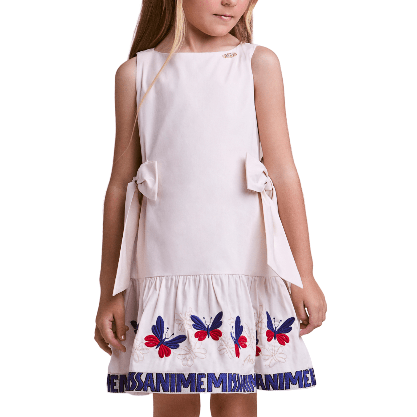 Vestido Infantil Bege com Bordado de Borboletas – Anime