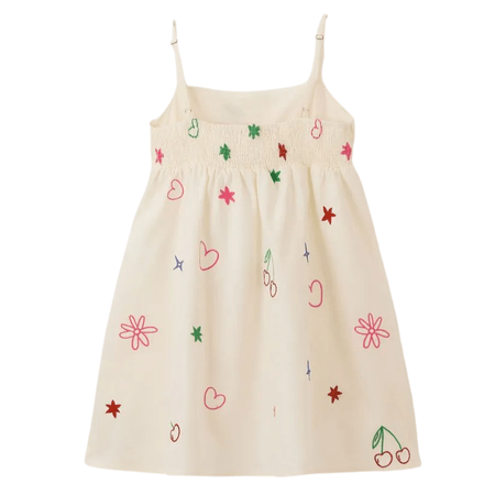 Com alcinhas finas reguláveis, busto confortável e saia rodada, o vestido proporciona movimento livre e leveza – ideal para dias quentes, passeios ou momentos especiais. O fundo off white deixa as cores dos bordados ainda mais encantadoras.