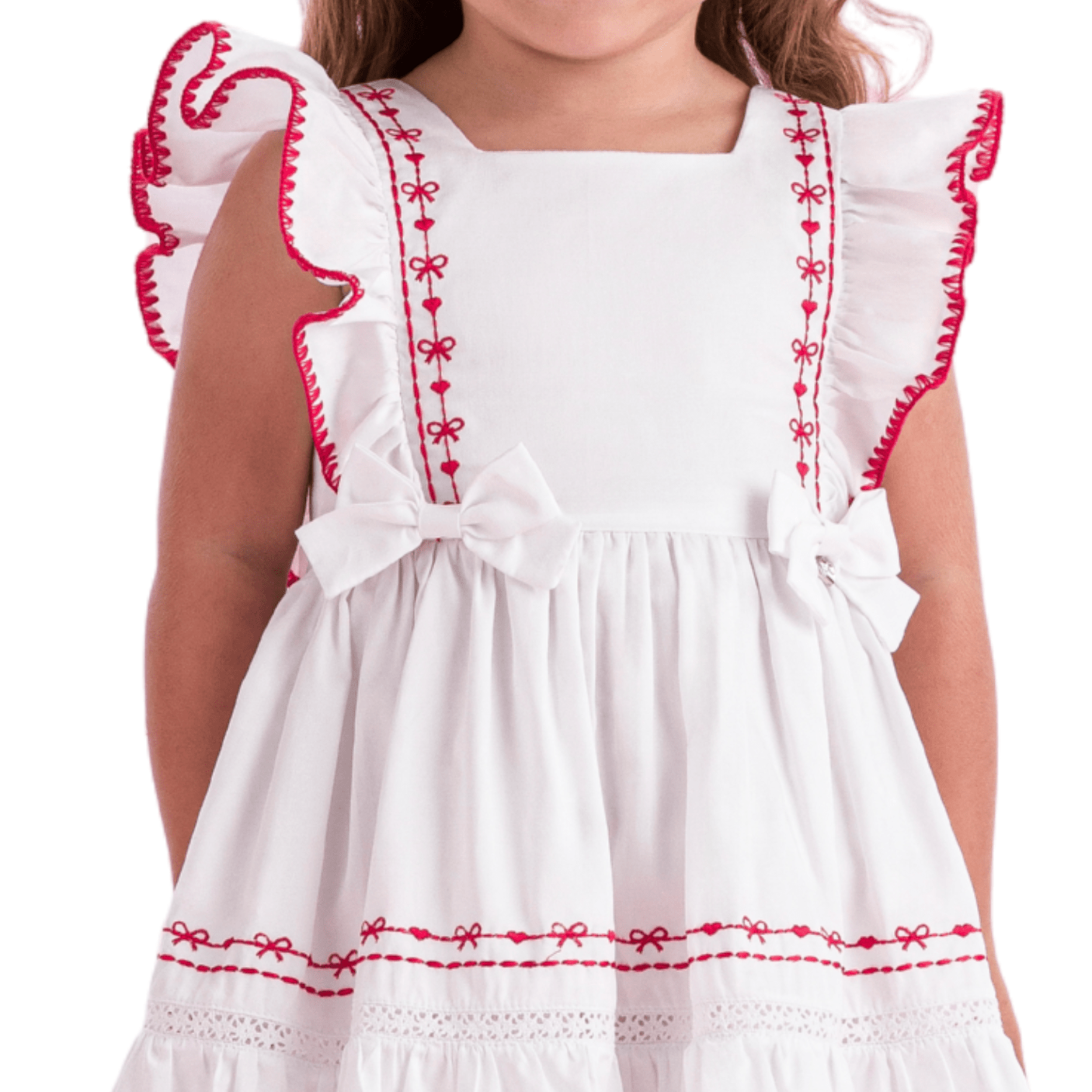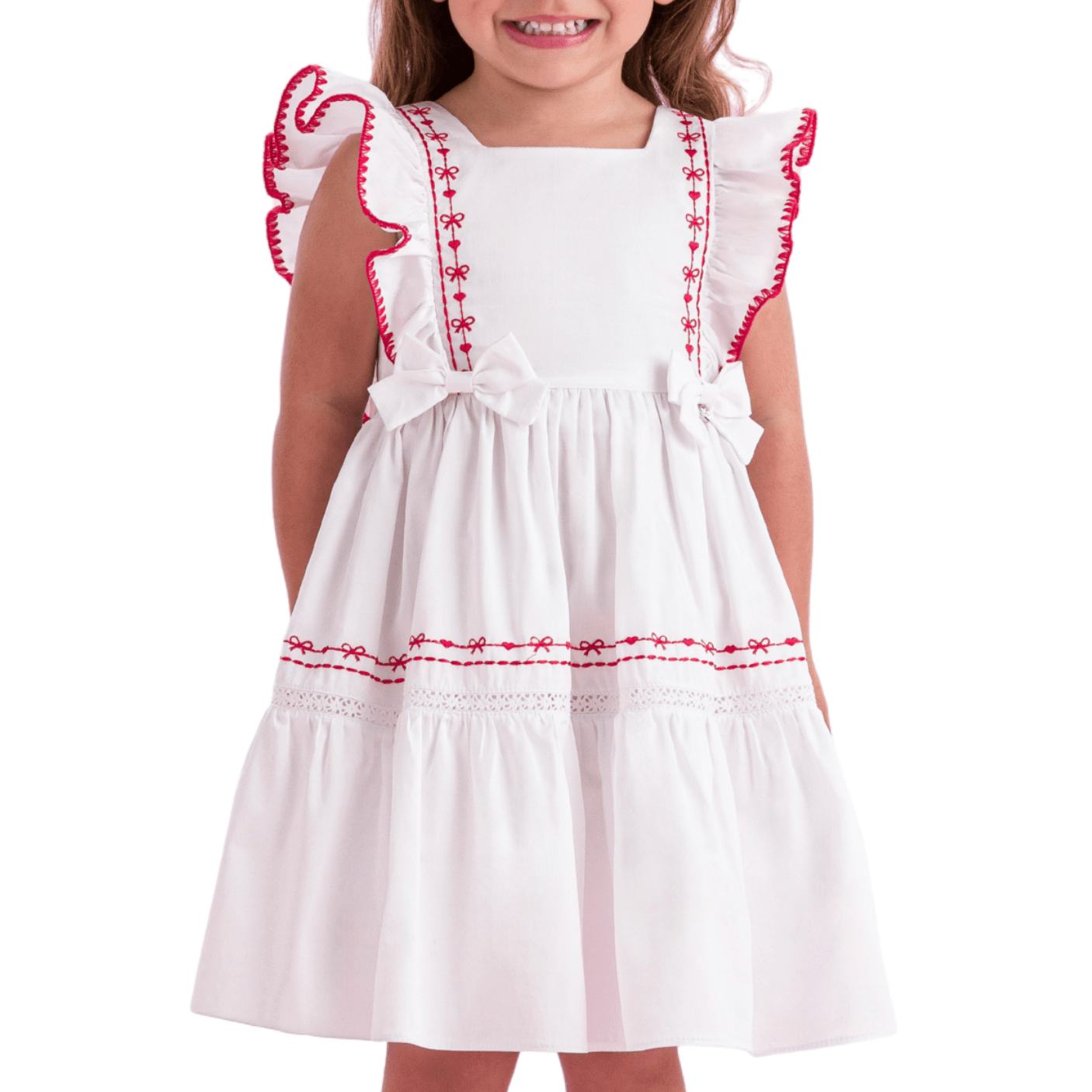 Vestido Branco Babadinhos Lacinho Bordado Vermelho Petit Cherie