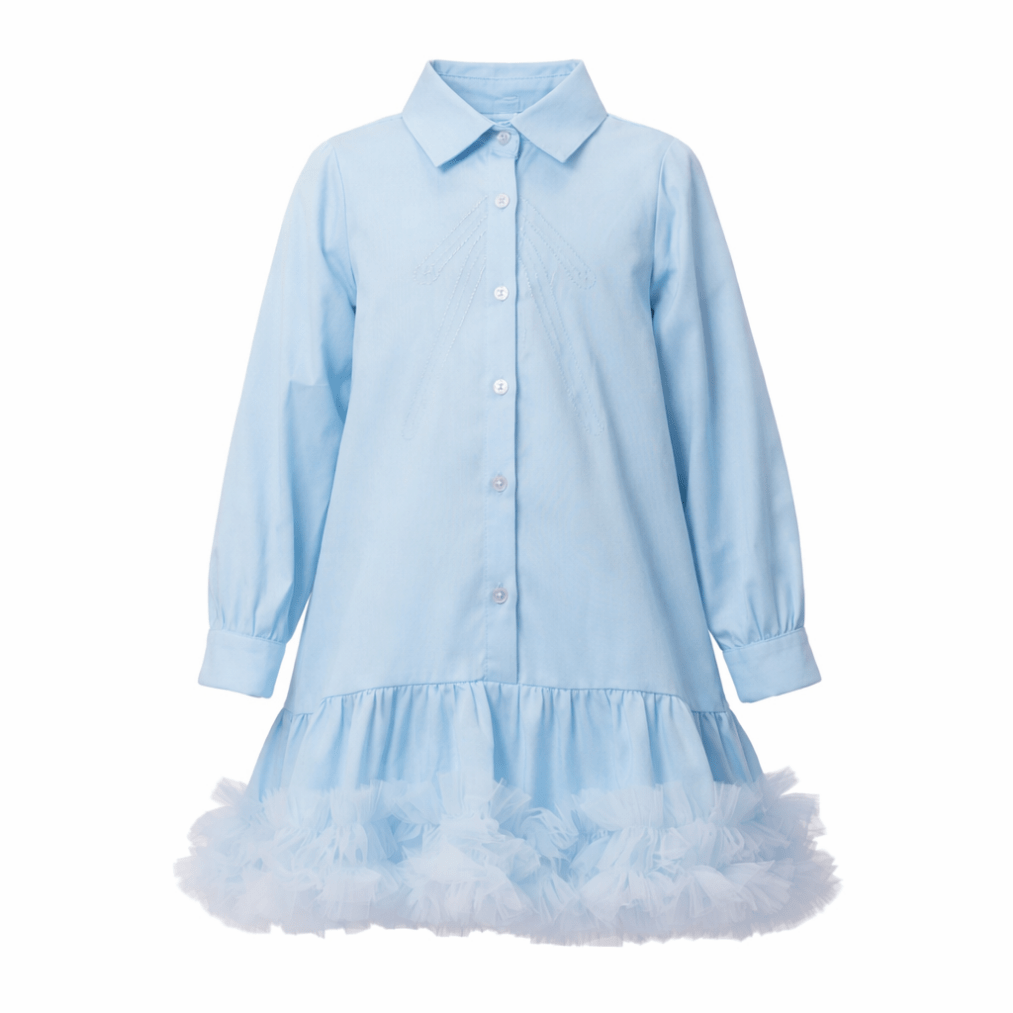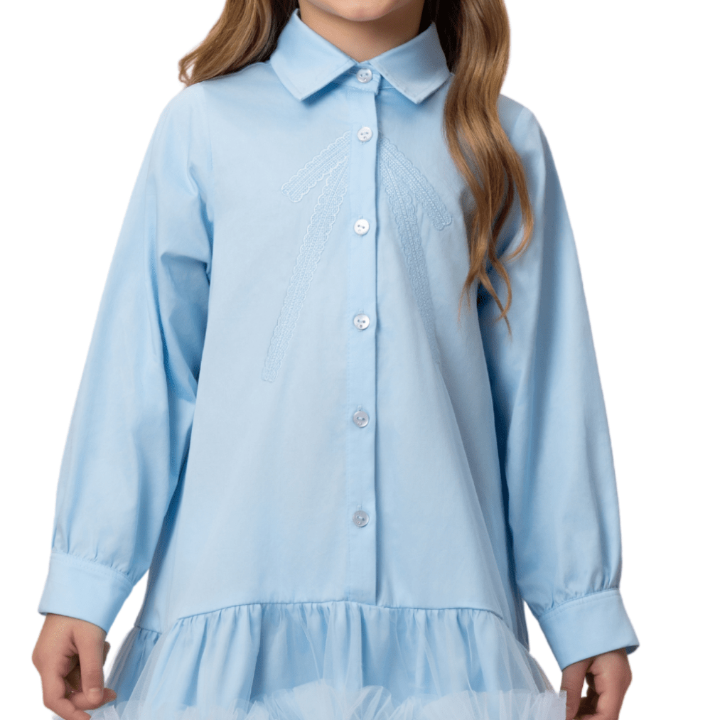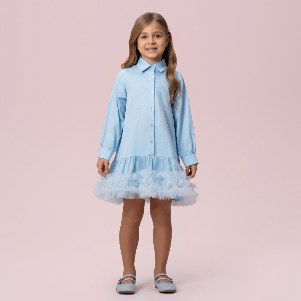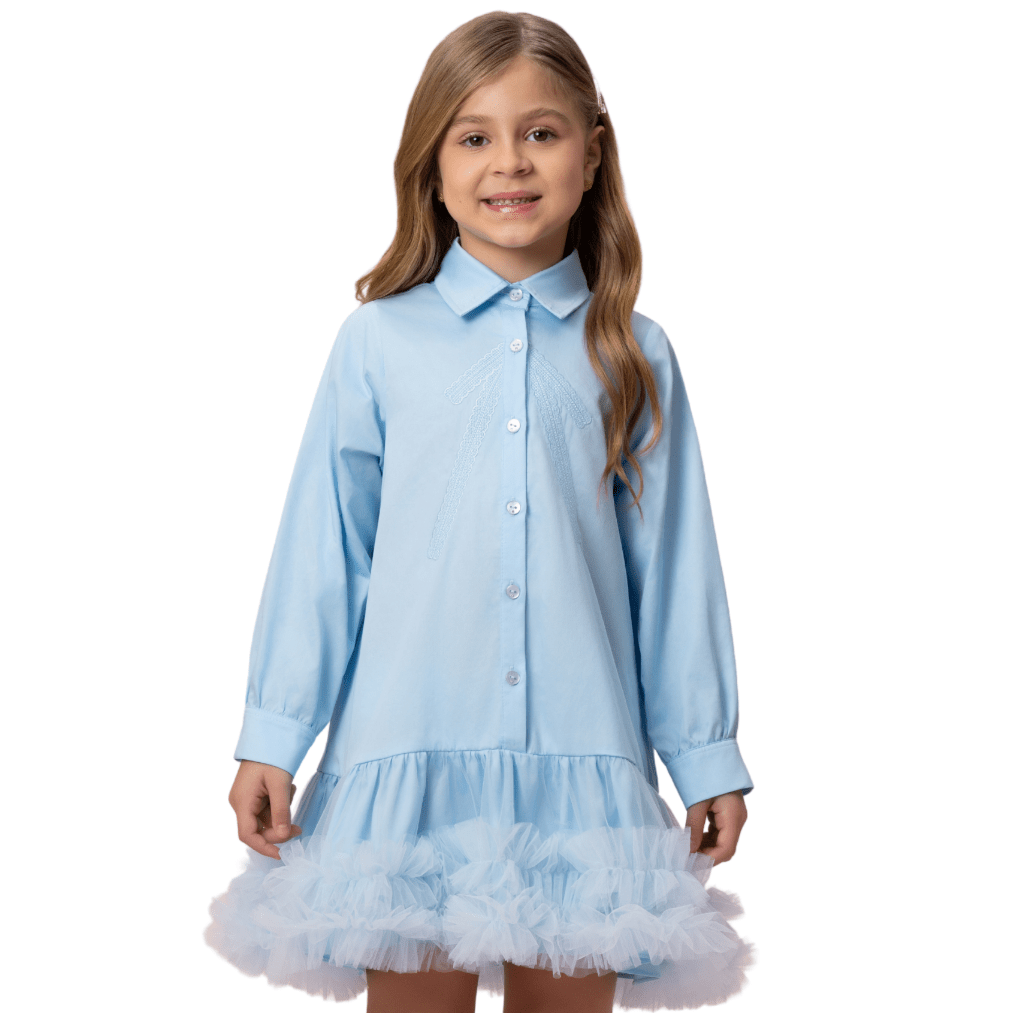 Vestido Camisa com Saia Tule Azul Claro Petit Cherie
