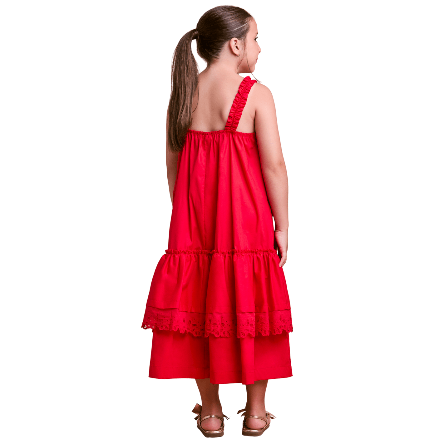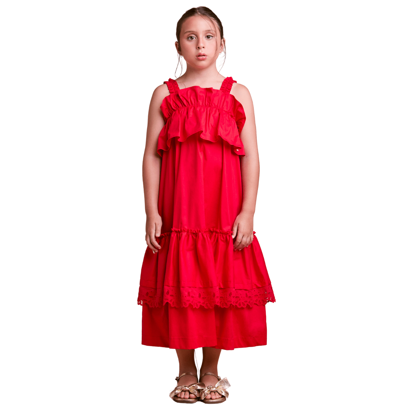 Vestido Infantil Vermelho com Babados – Preppy Anime