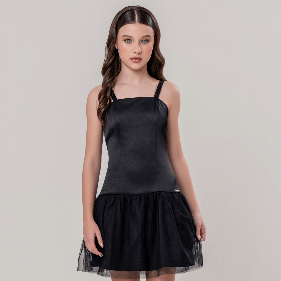 O Vestido com Saia de Tule e Alças Largas Preto Vanilla é a definição de elegância moderna com toque fashion