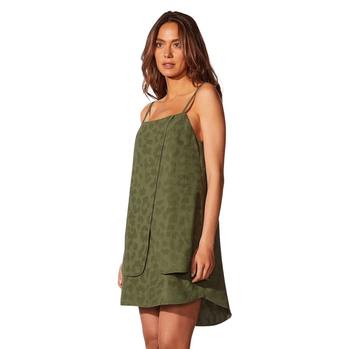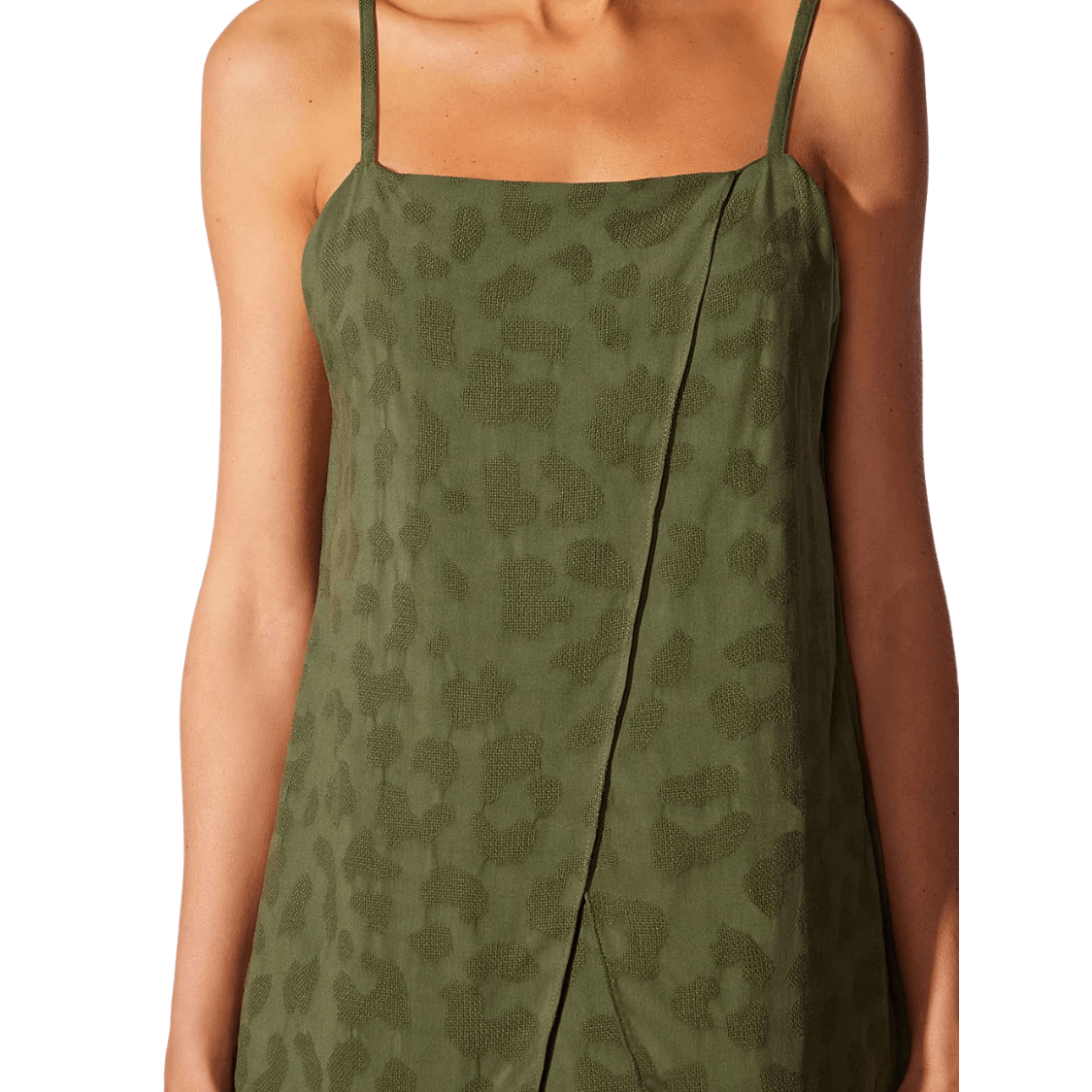 Confeccionado em jacquard leve e fluido, o vestido apresenta uma textura sutil que eleva o visual, trazendo mais profundidade e sofisticação à peça. A modelagem soltinha com alças finas e recorte sobreposto frontal cria um efeito contemporâneo e elegante, garantindo movimento e leveza.