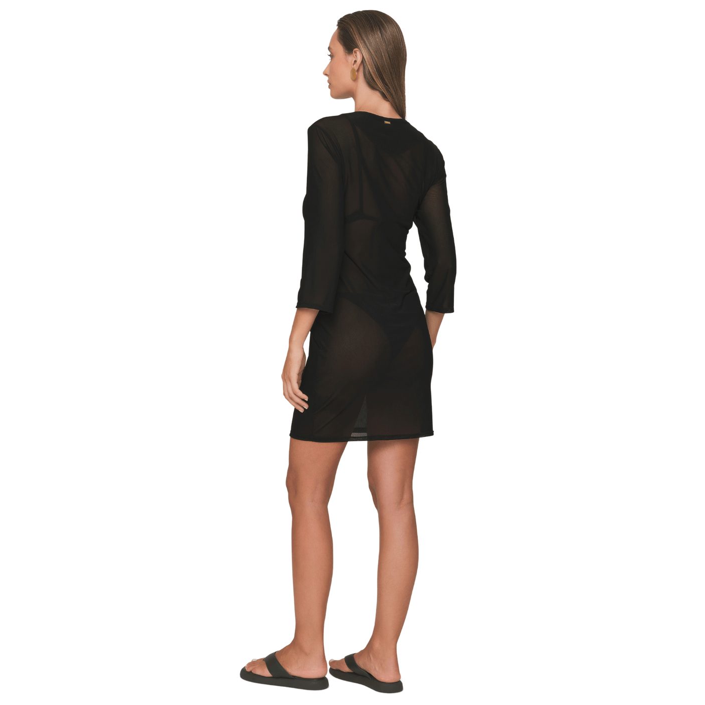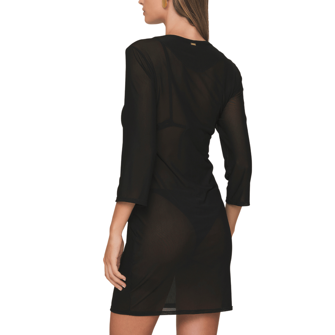 O design moderno apresenta decote profundo em V, com detalhe de argola central que cria um efeito de recorte delicado e arrojado, valorizando a silhueta. As mangas 3/4 adicionam sofisticação e versatilidade, equilibrando a proposta sensual com um toque elegante. A modelagem soltinha proporciona caimento impecável e conforto durante o uso, enquanto o comprimento curto torna a peça prática e estilosa.