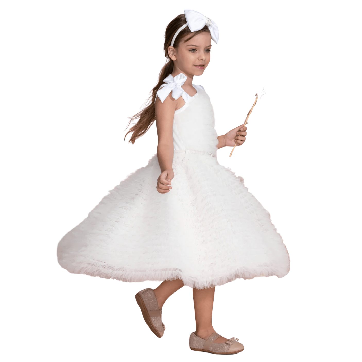 O Vestido Especial Festa Frufru Laço Off White Pituchinhus é uma verdadeira joia da moda infantil, pensado para transformar qualquer ocasião em um momento inesquecível. Feito para meninas que amam brilho, encanto e elegância, este modelo é ideal para eventos especiais como casamentos, daminhas, aniversários, sessões fotográficas, formaturas e celebrações memoráveis.