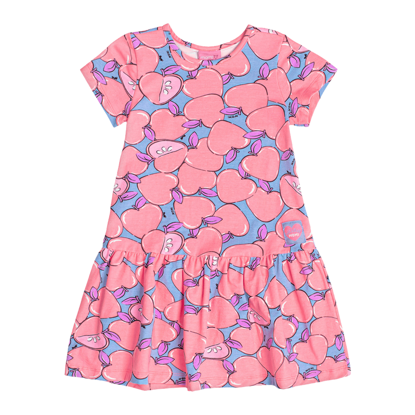Vestido Maçãs Neon Lavanda Momi – Doçura, Cor e Diversão em um Só Look