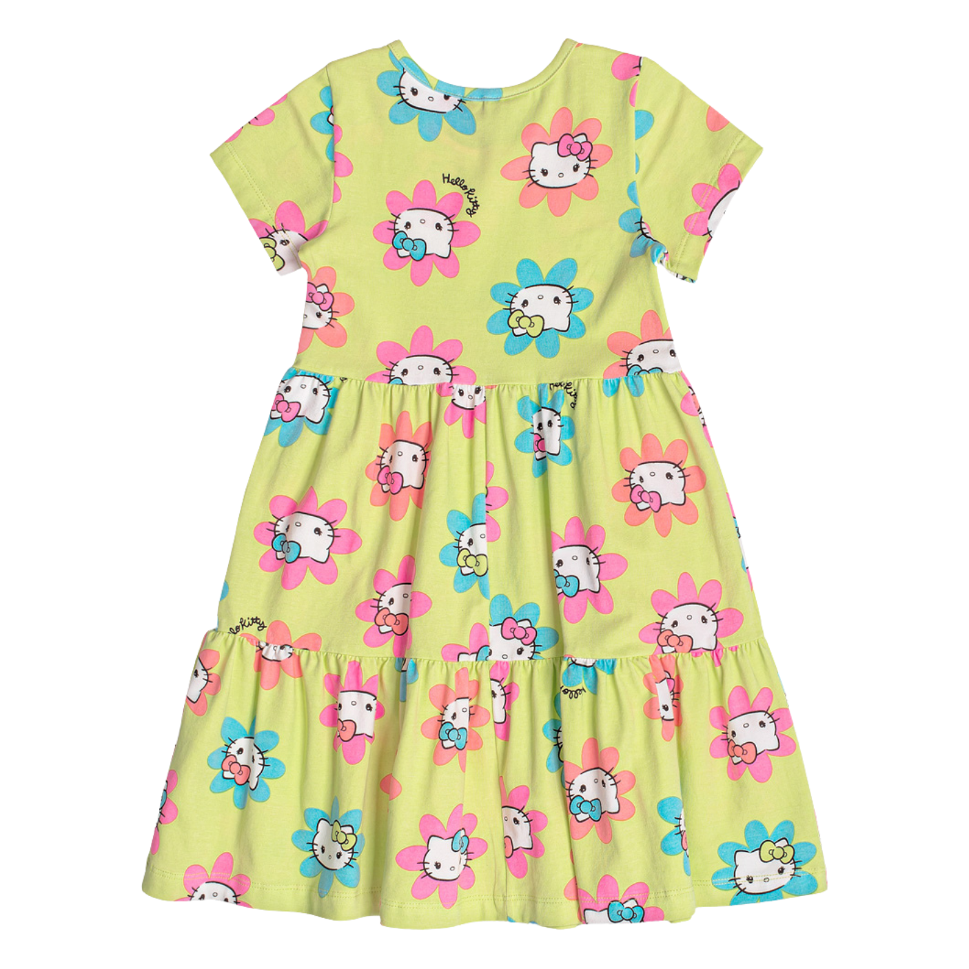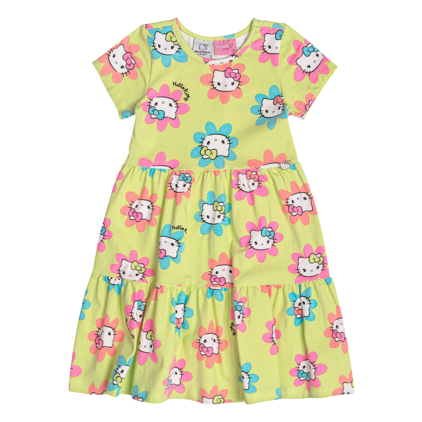 Vestido Malha Hello Kitty Verde Flores Momi – Conforto e Charme com Toque Divertido!