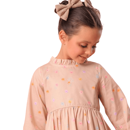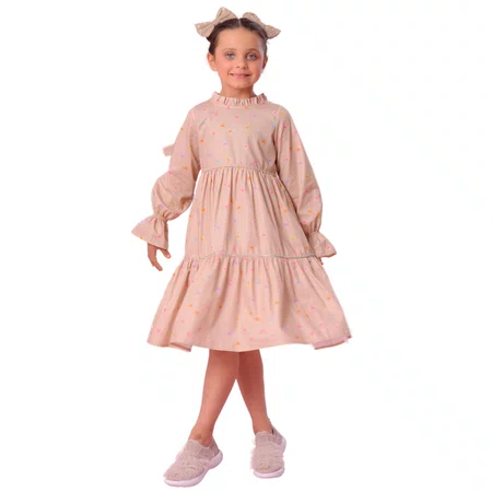 Este encantador vestido em algodão Pituchinhus é a escolha perfeita para um visual delicado e cheio de estilo. Com um caimento impecável e tecido macio, oferece máximo conforto sem abrir mão da elegância. A gola redonda e a manga longa conferem um ar clássico e atemporal, ideal para diversas ocasiões.