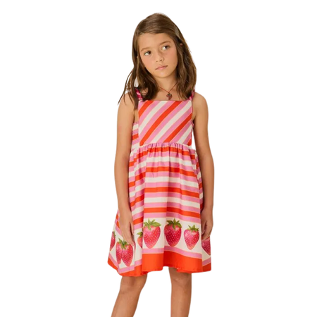 Vestido Moranguita Listras Vermelha e Rosa – Fábula