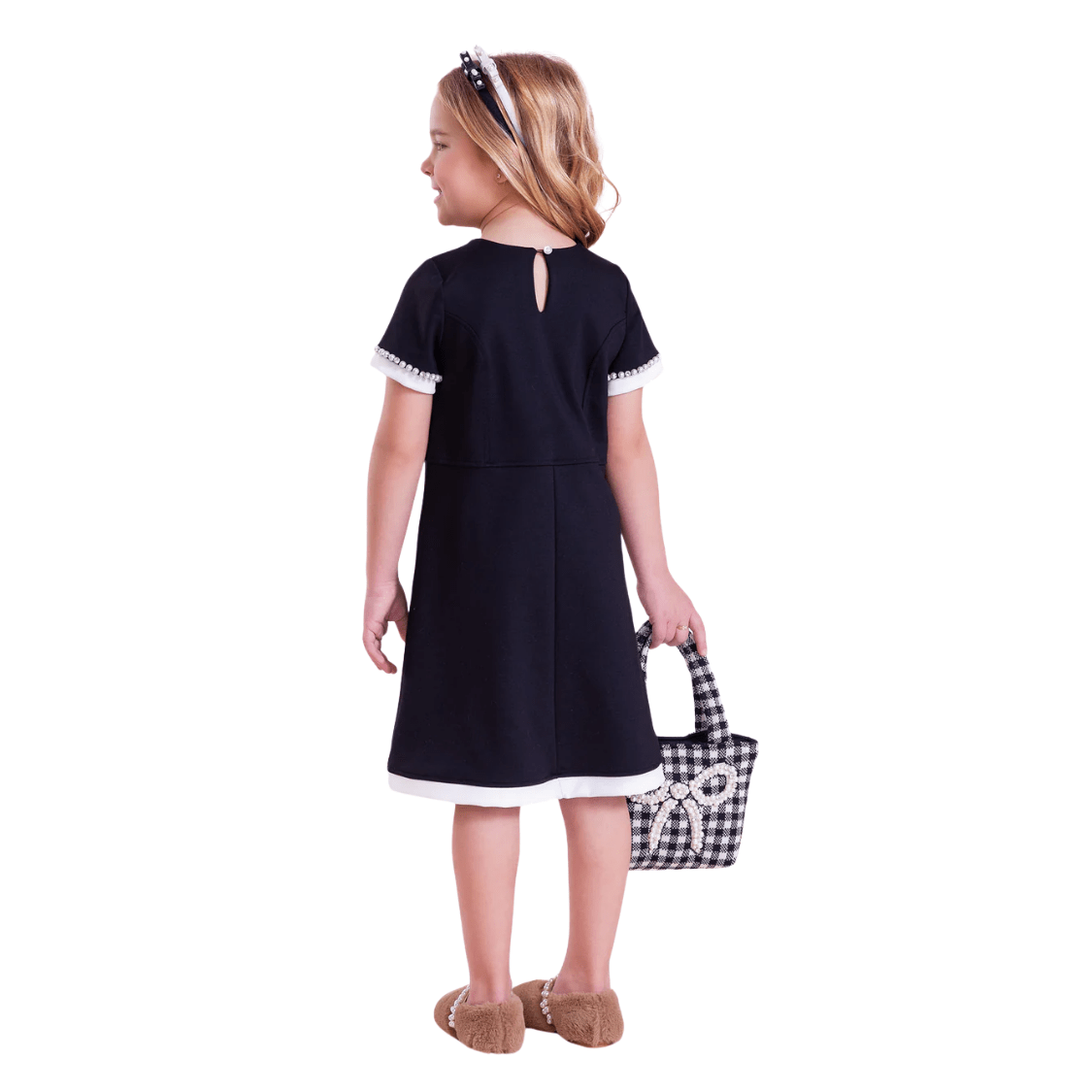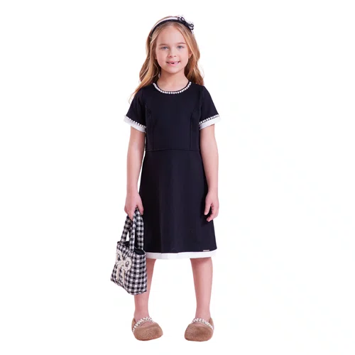O Vestido Ponto Roma Bordado Preto Pituchinhus é uma peça clássica e elegante, perfeita para compor looks infantis sofisticados e atemporais. Com design minimalista e acabamento refinado, o vestido se destaca pelos detalhes bordados delicados na gola e nas mangas, que trazem charme e delicadeza ao visual.