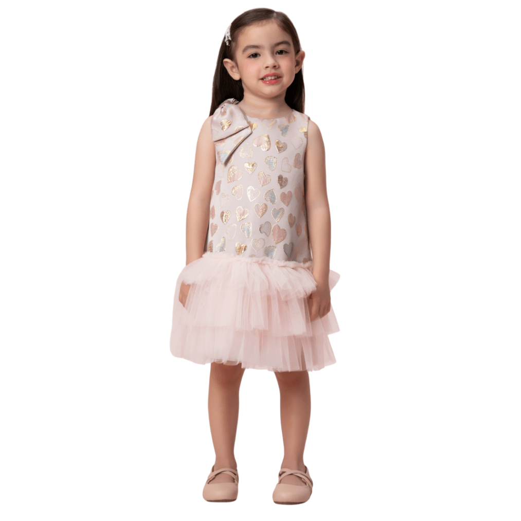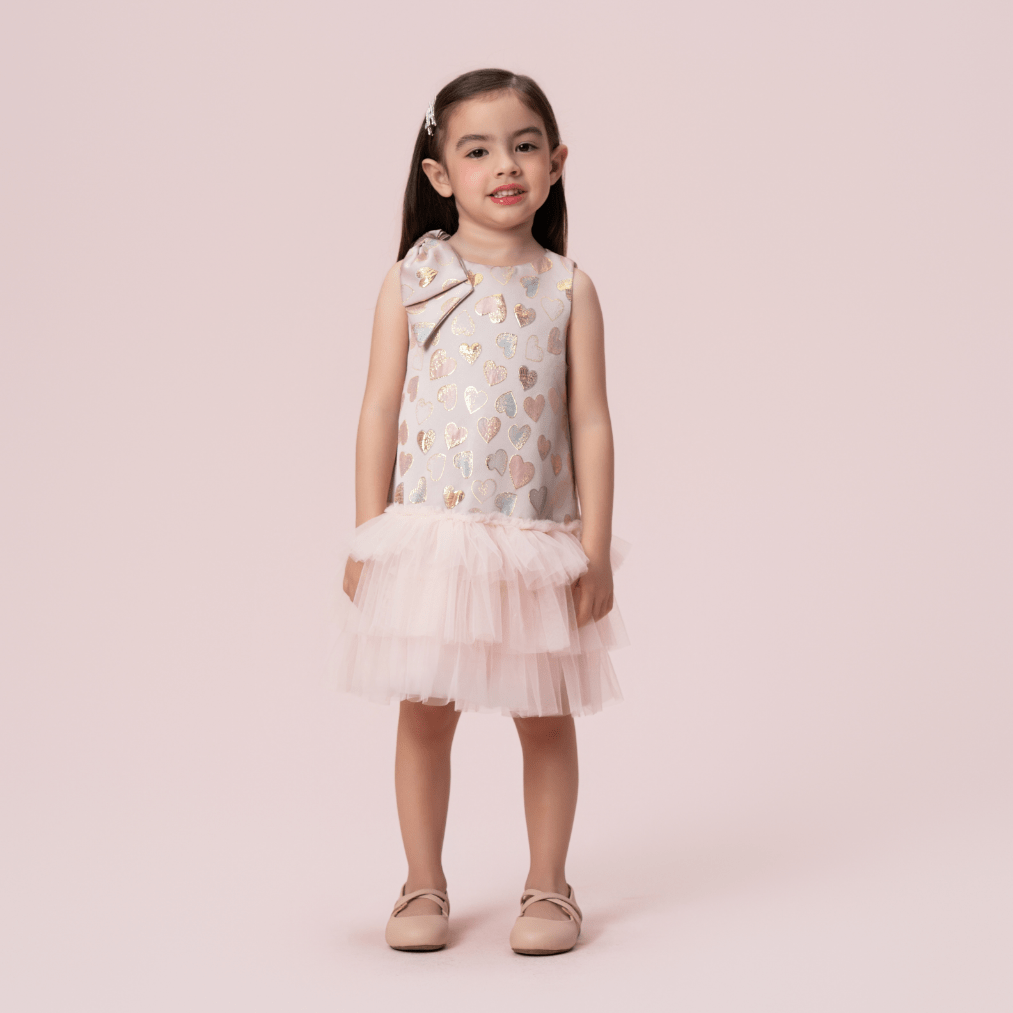 O Vestido Tafetá Corações Petit Cherie é a escolha perfeita para um look encantador, delicado e cheio de brilho para ocasiões especiais