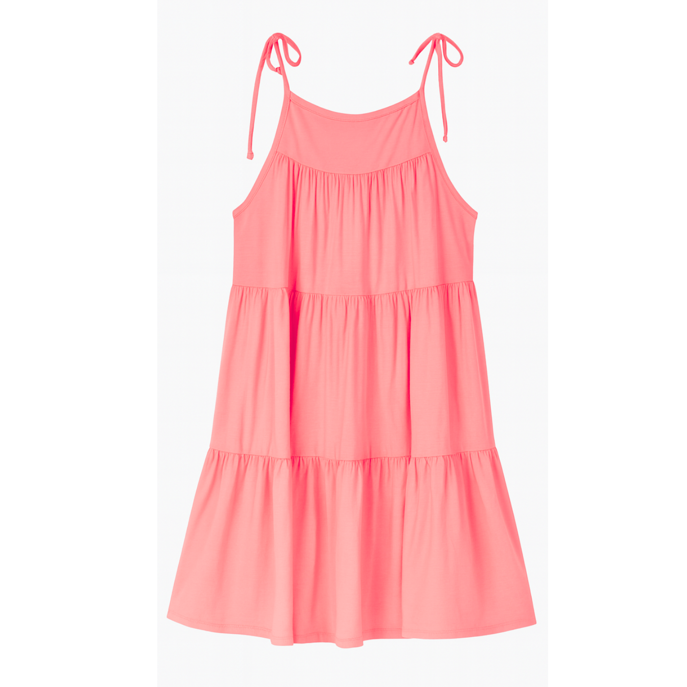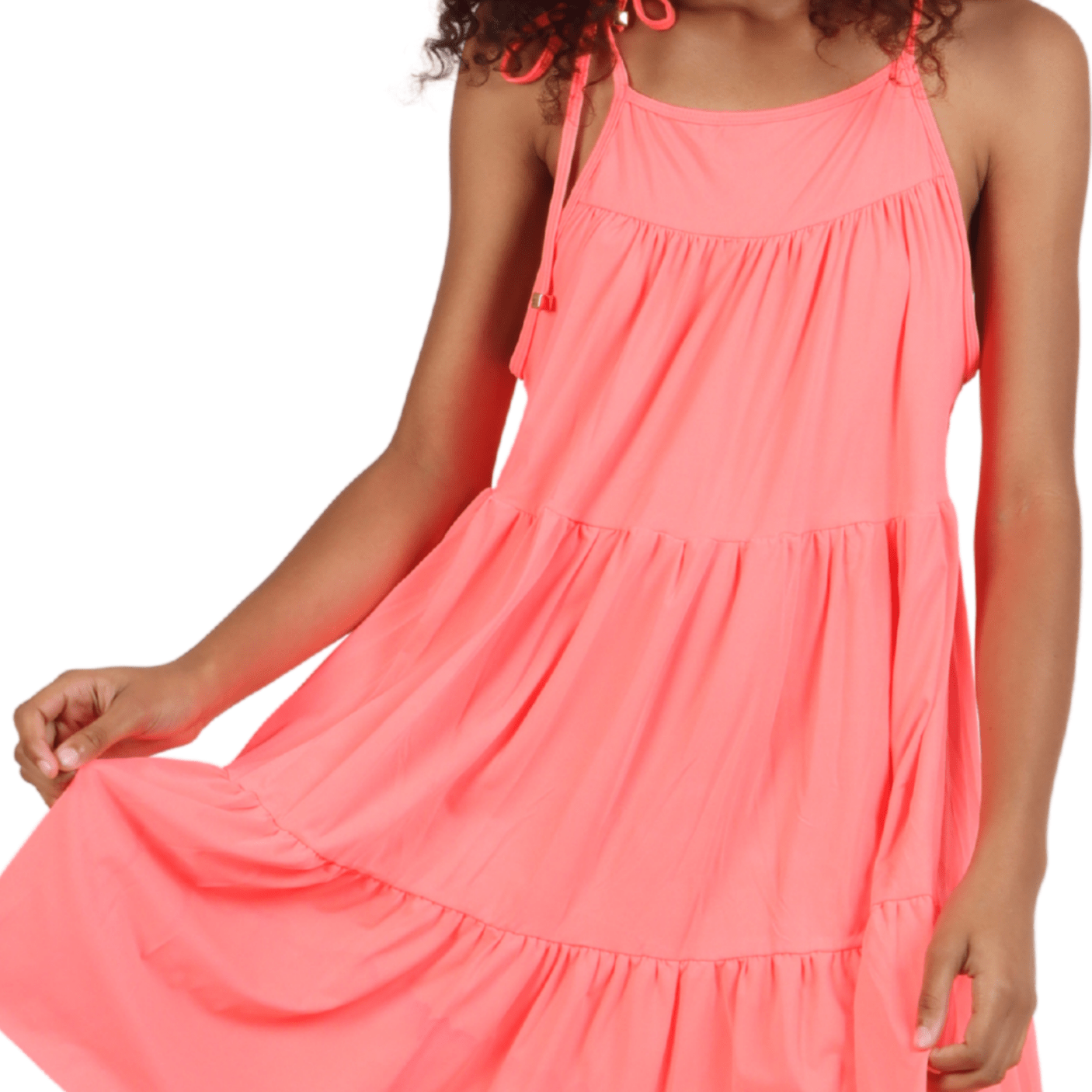 O design apresenta modelagem soltinha com camadas levemente rodadas, que criam um movimento delicado a cada passo. A cor rosa vibrante adiciona alegria e feminilidade, tornando a peça versátil para usar tanto na praia quanto em passeios e momentos casuais. As alças finas proporcionam um visual fresh e descontraído, ideal para composições com rasteirinhas, sandálias ou até tênis, permitindo criar produções que vão do dia à noite com facilidade.