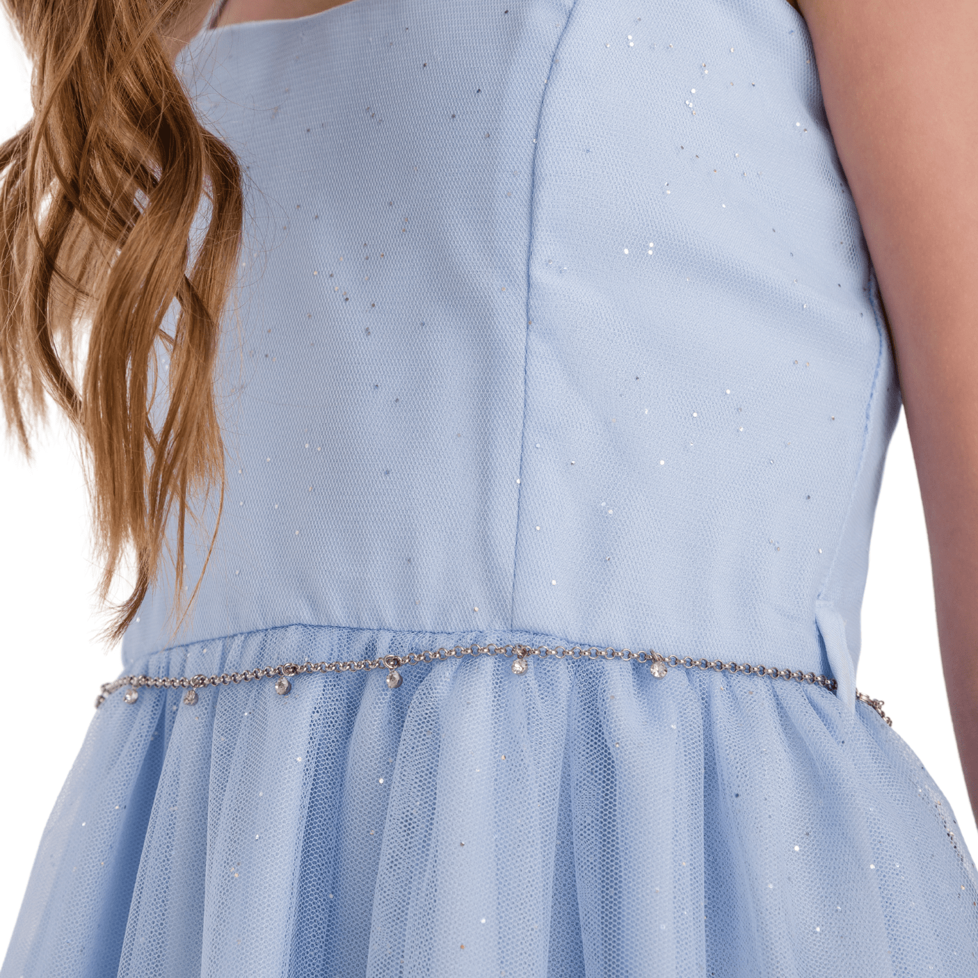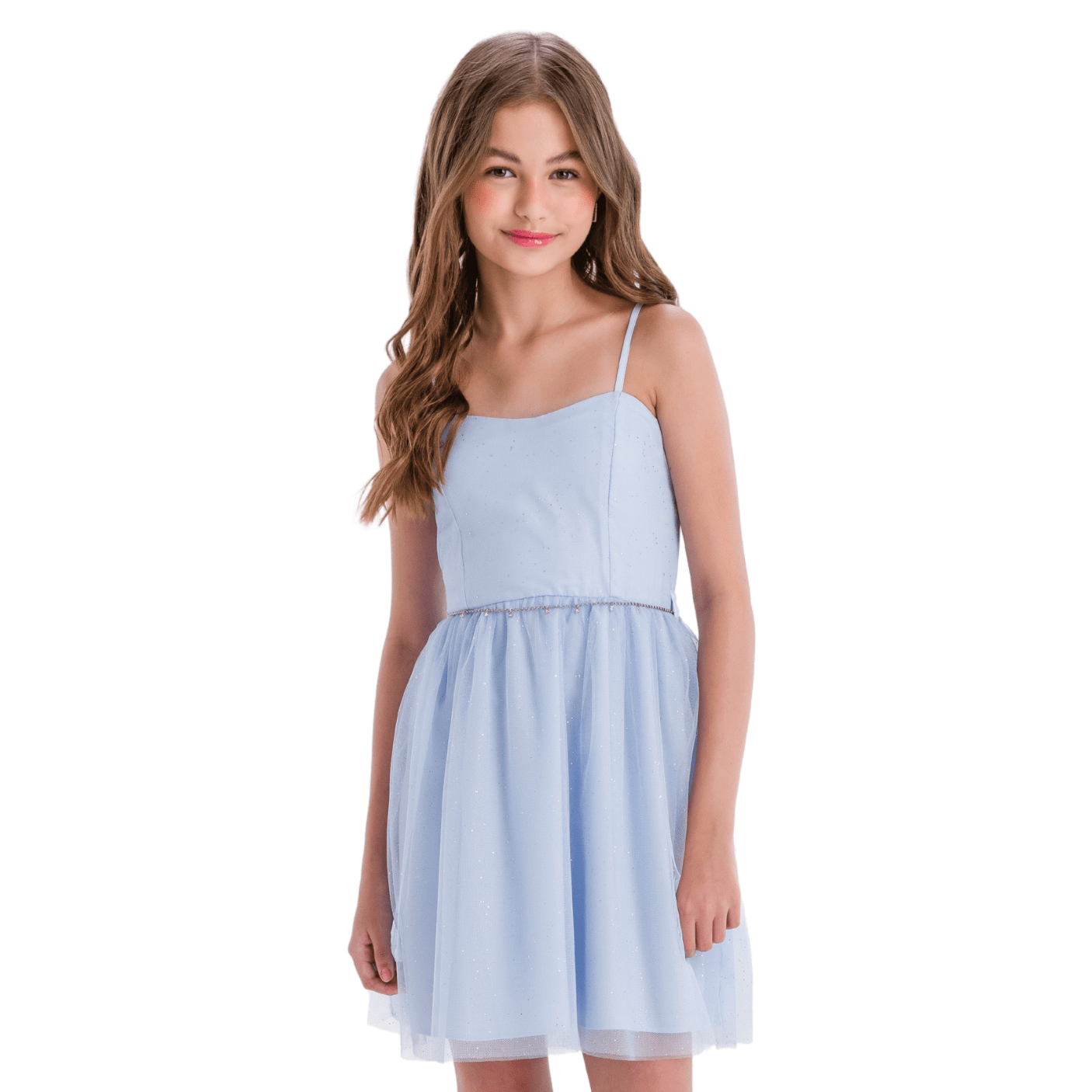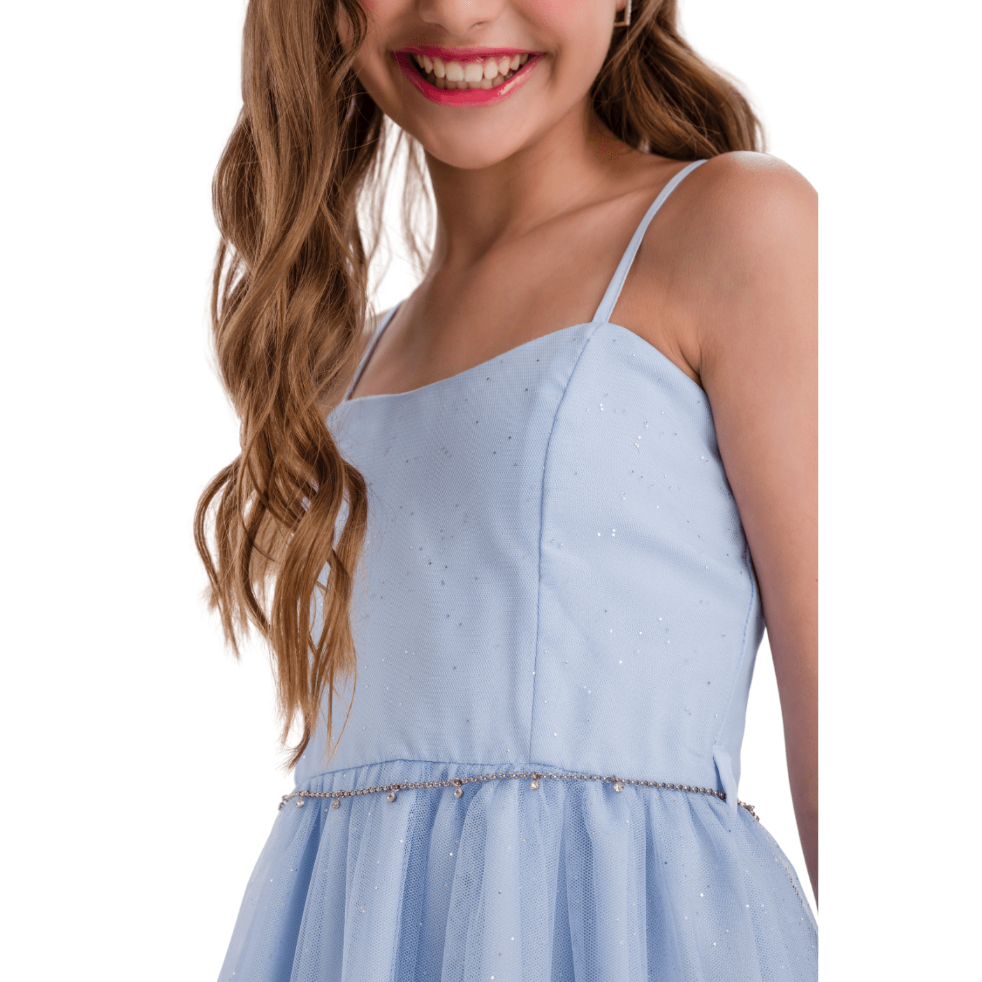 O Vestido Tule Alcinha Azul Bebê Vanilla é sinônimo de delicadeza e encanto, perfeito para ocasiões especiais que pedem um toque de sofisticação e charme. Confeccionado em tecido leve e confortável, possui sobreposição em tule azul bebê com brilho sutil, que adiciona luminosidade e movimento ao visual, garantindo um efeito romântico e inesquecível.