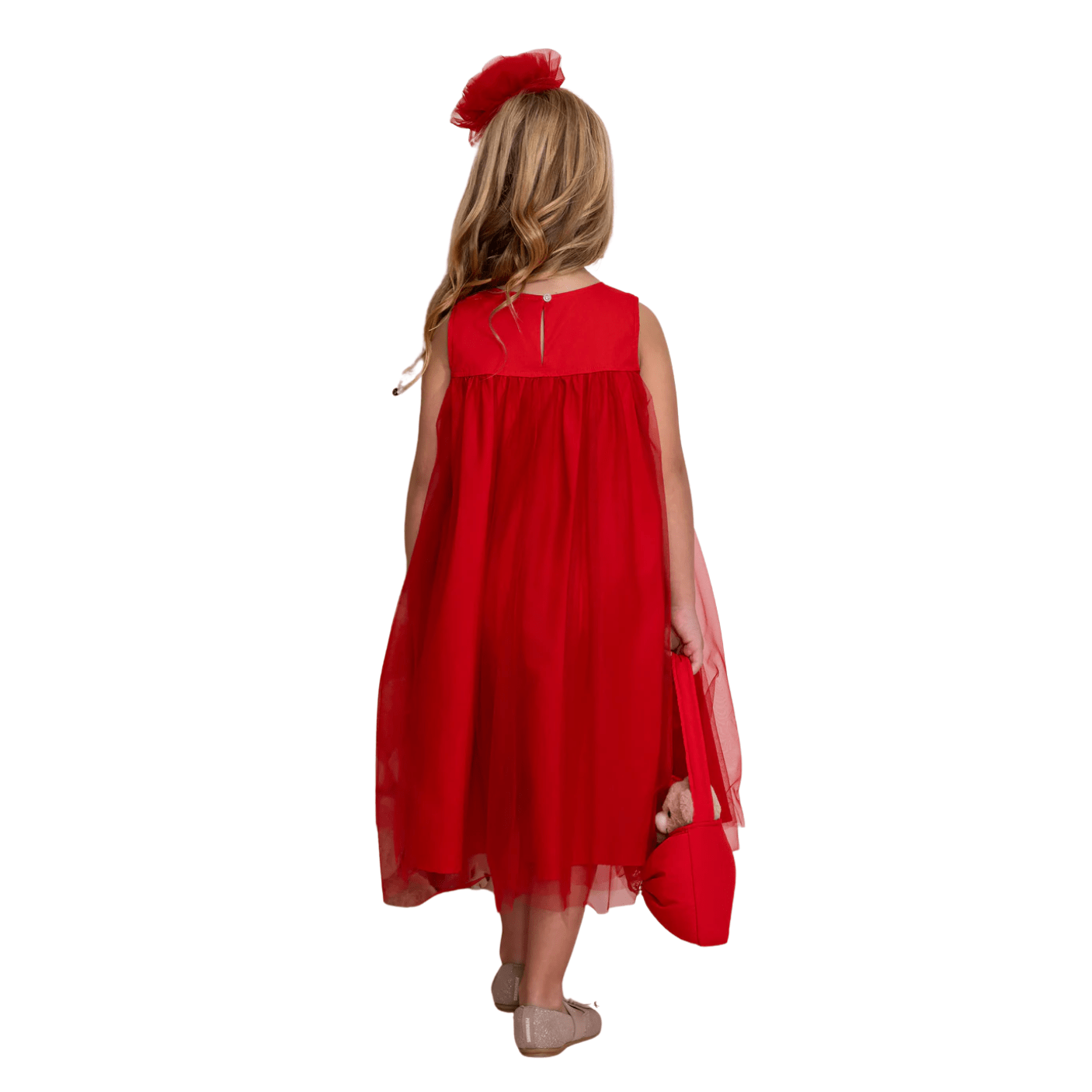 O vermelho vibrante faz deste vestido a escolha ideal para celebrações marcantes — como Natal, festas, formaturas, aniversários e apresentações. O caimento confortável permite que a menina se movimente com liberdade, mantendo o visual impecável e elegante durante todo o evento.